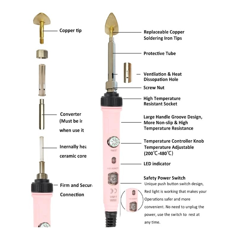 Mini Iron, 80W Tiny Iron for Small Crafts Patches Clothes Shoes Hats, Adjustable Temperature, Easy to Use, with Replaceable Iron Tips(Pink)
