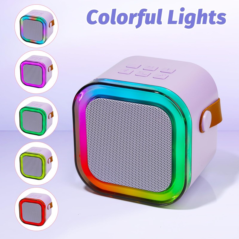 - 3. Dynamic LED Lights & Portable Design "Multi-Color LED Stage Lights Sync with Music, portable karaoke machine,while the Compact Size and Built-in Handle Make It Easy to Carry for HomeParties, or Travel."