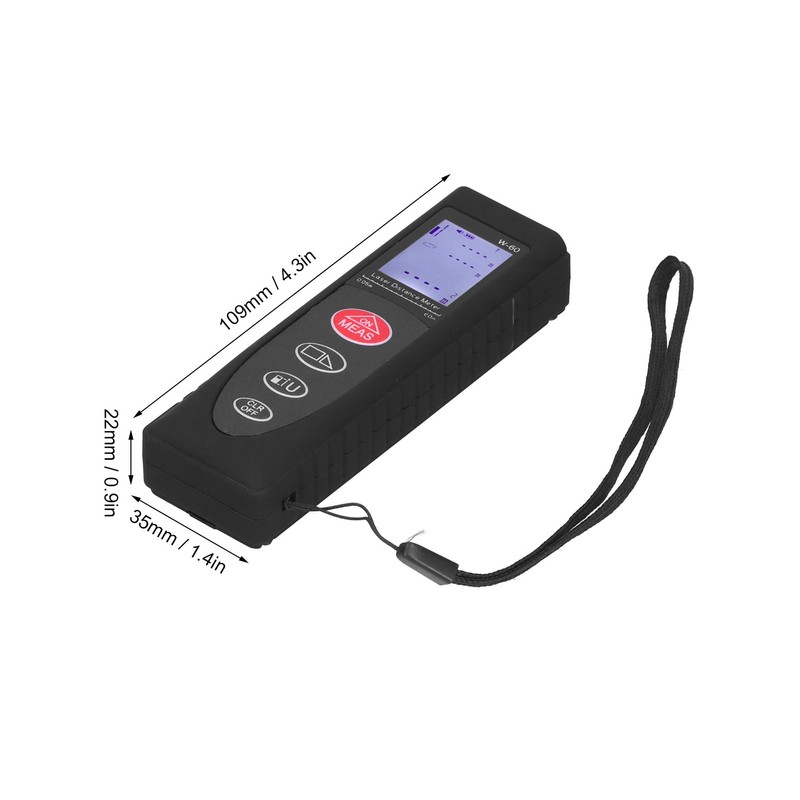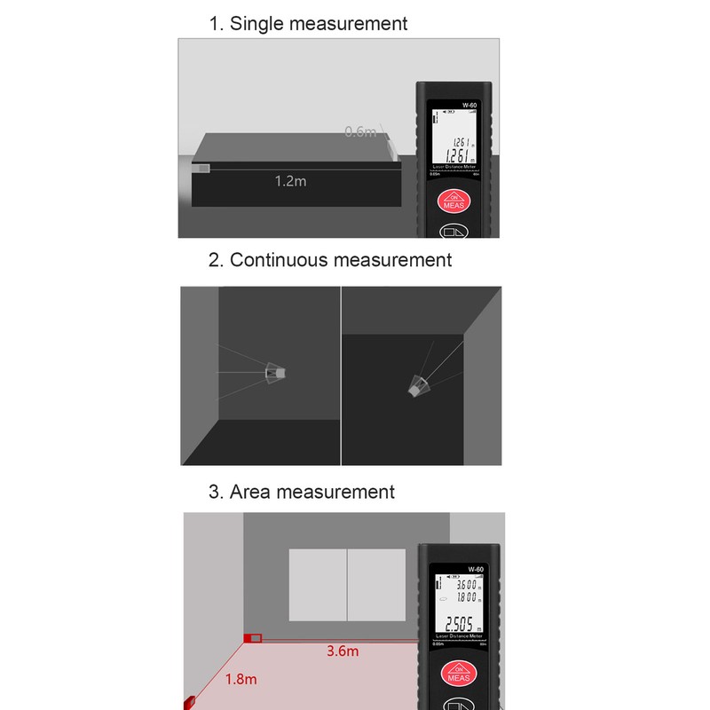 1、Laser rangefinder, with high‑definition backlight display, easy to use in dark environments. 2、High‑strength ABS engineering plastics, one‑piece molding, inner and outer rubber coating, safe and durable. 3、Aspheric optical focusing lens enhances reflected light reception and accurate measurement. 4、The measuring range is 0.05‑60m, the accuracy is ±2mm, the error is small, long service life. 5、It is widely used in installation and measurement, with low power consumption and stable performance.
