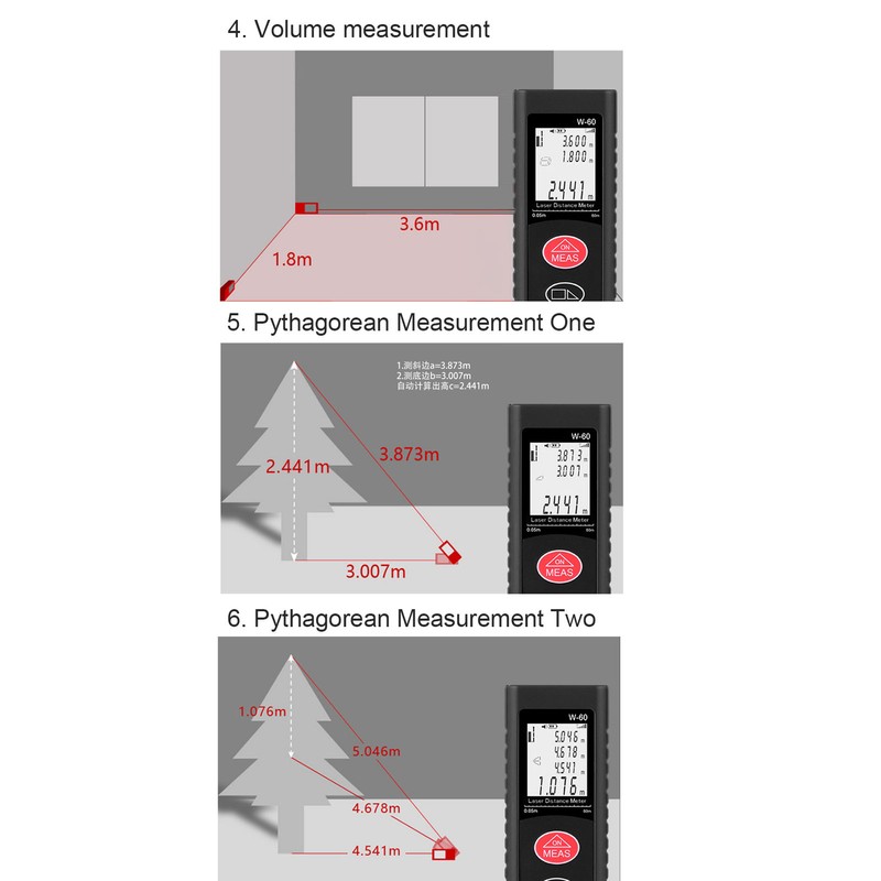 Mini Laser Rangefinder 60m Handheld Infrared Distance Meter Construction Measurement Tool