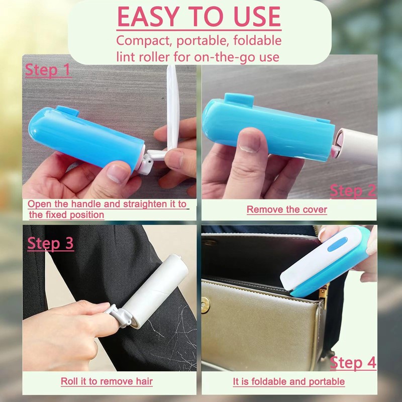- [Compact and Portable Design]Our portable lint roller is designed for ultimate convenience. The mini lint roller is foldable, making it incredibly compact and easy to carry. Foldable Small Size 3.6*1.6*1.3 inch, Its size is comparable to a lipstick, fitting perfectly into your purse, backpack, or pocket.