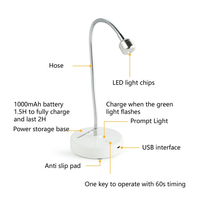 - Flexible de 360°: la lámpara LED de uñas tiene un diseño de cuello de cisne libremente flexible, que se puede doblar libremente en 360 grados, y la altura y dirección de la luz se pueden ajustar de forma flexible, por lo que es fácil limpiar geles o esmaltes en uñas de las manos o los pies