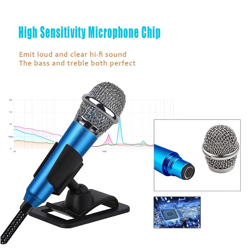 Mini Microphone, Mini Karaoke Microphone with 3.5 mm Universal Cable, Voice Recording Mic Equipment, Portable Singing Microphone Suitable for Android Phones, iPhones, Laptops, and PC (Blue)