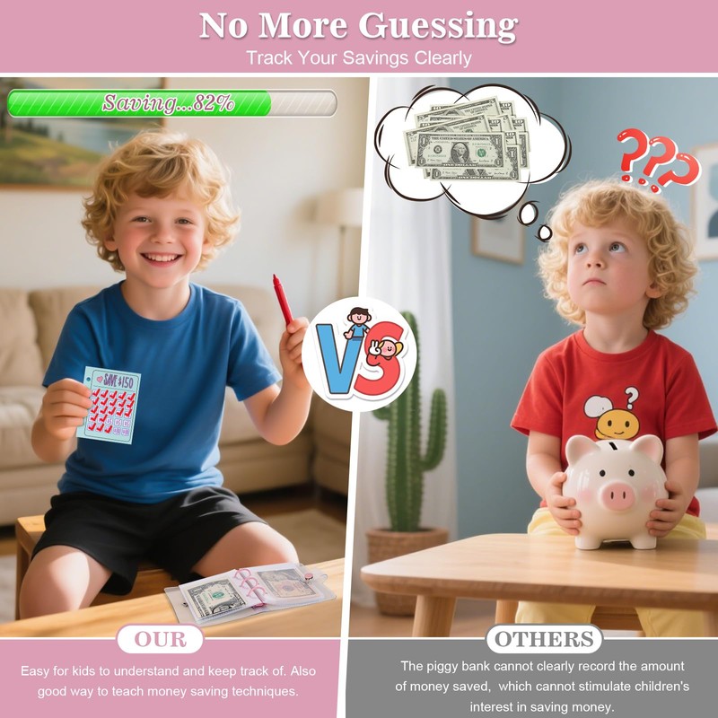 Mini Money Savings Binder, Save $150 Saving Challenge Book (Pink, 1 Pack)
