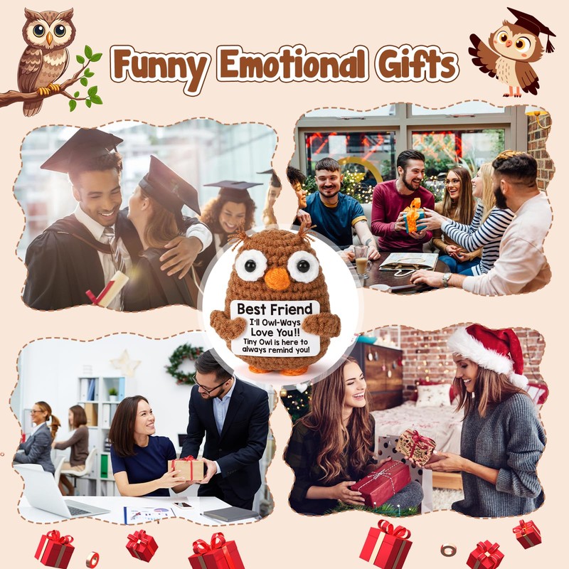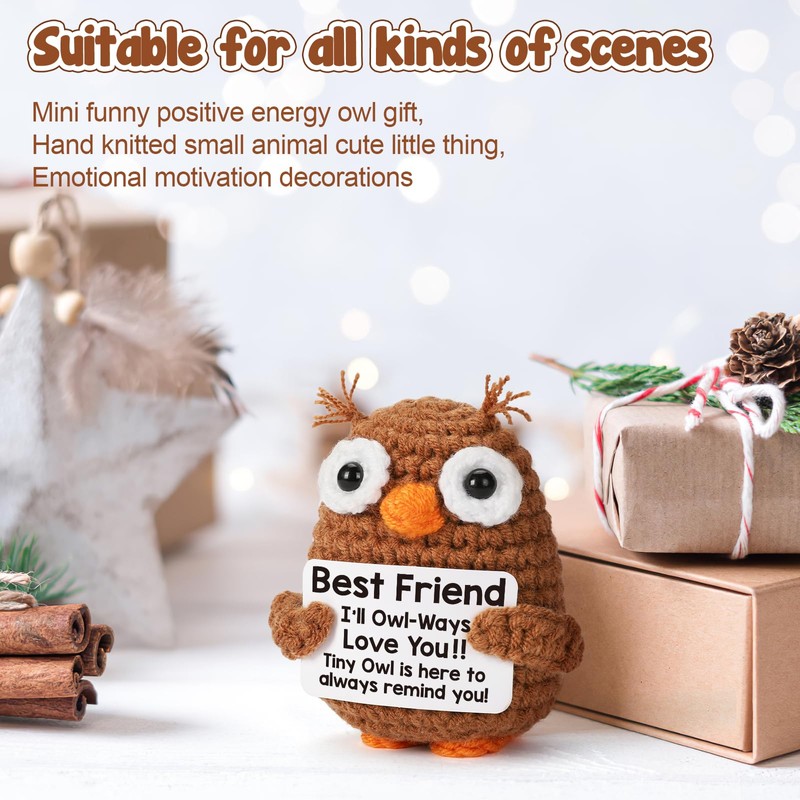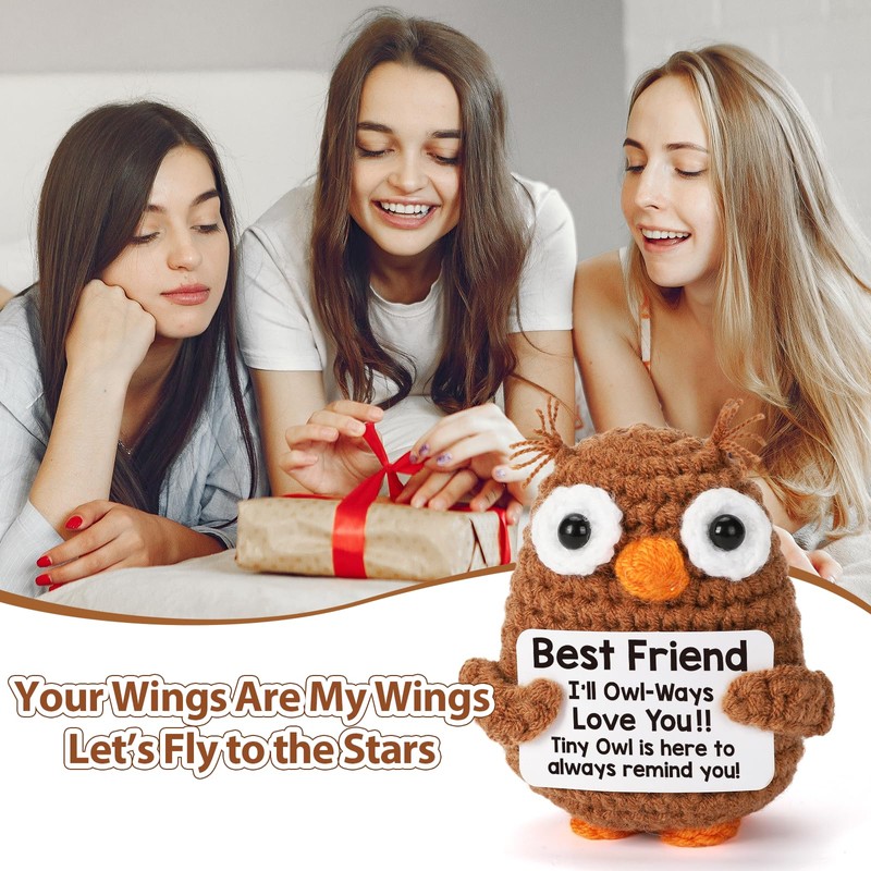 Mini Mothers Day Friends Friendship Gifts for Best Friends BFF Bestie Soul Sister, Positive Crochet Owl for Friends Birthday Graduation Gift, Funny Friend Gifts for Female Male Emotional Cute Stuff