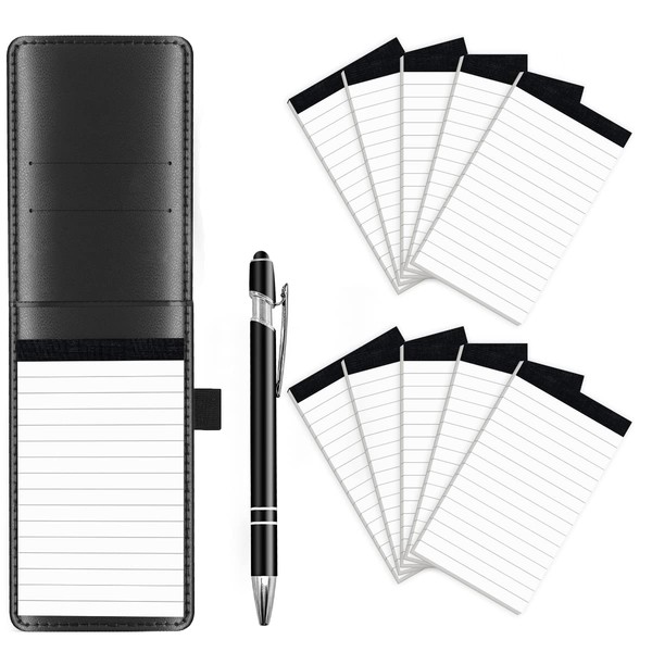 - Valuable package: set of 12 small leather notepad holders, A7 small notepads mini with 30 lined sheets, refillable paper. Also includes a metal pen and 10 replacement pads for notepad with 30 lined sheets per pad. They are lined pages, can write conveniently, good for business, conference, meeting, office and travel, it is a choice for business people. A high-quality, versatile pocket notepads that will meet many of your needs.