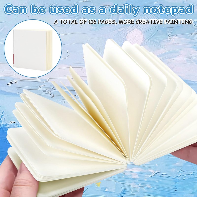 - Watercolour sketchbook: the watercolour palette travel has magnets and is connected by them. The mini sketchbook measures approximately 8 x 8 cm. Sketch book palette set has 58 sheets of watercolour paper and both sides can be painted, you will have more than enough space to express your creativity.