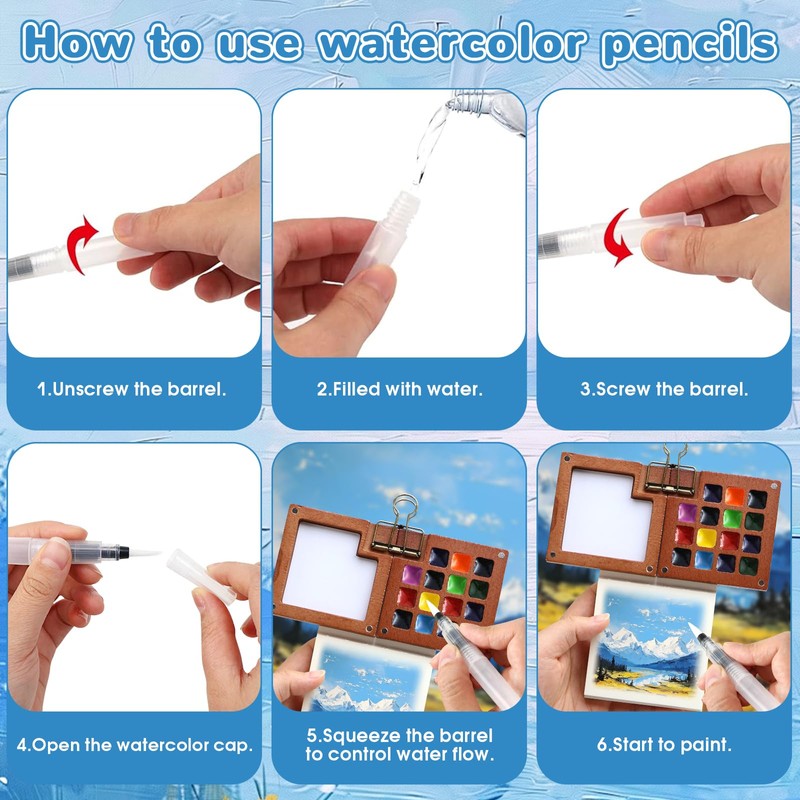 - Great gift ideas: this portable watercolour palette is ideal for travel as well as for sketching and painting outdoors. Mini watercolour travel set is a great gift for professional artists, travel sketches, students, beginning watercolour painters, etc.
