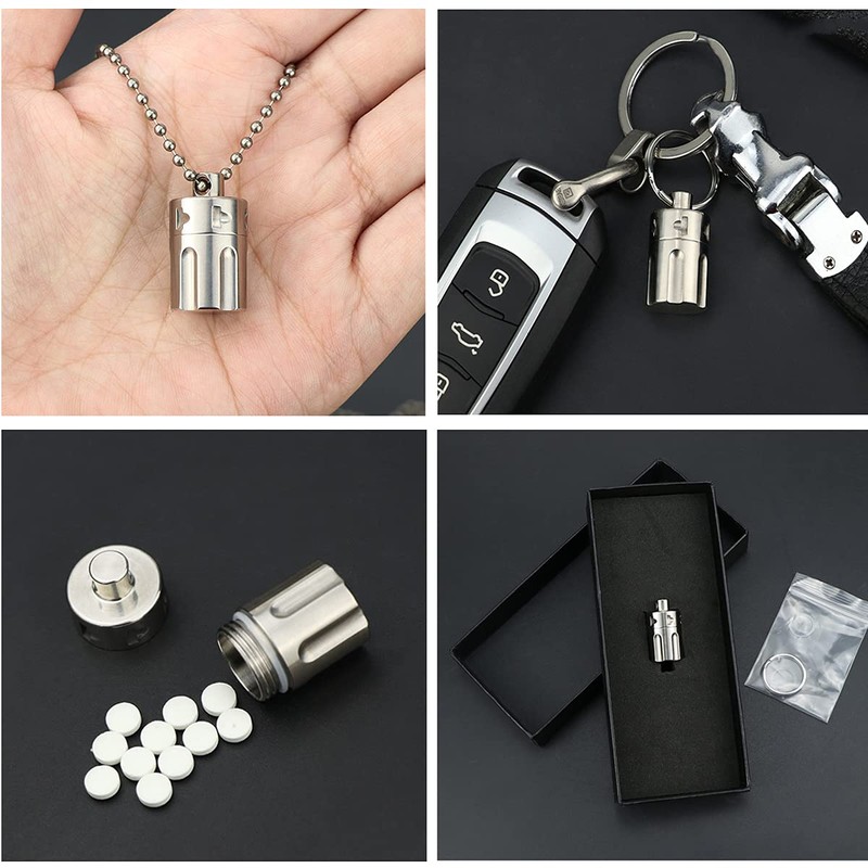 - 1. Mini Pill Box Keyring - Portable Waterproof Pill Box Birth Control Pill, Titanium Storage Box, Mini Pill Case for Outdoor Travel Wallet or Bag.