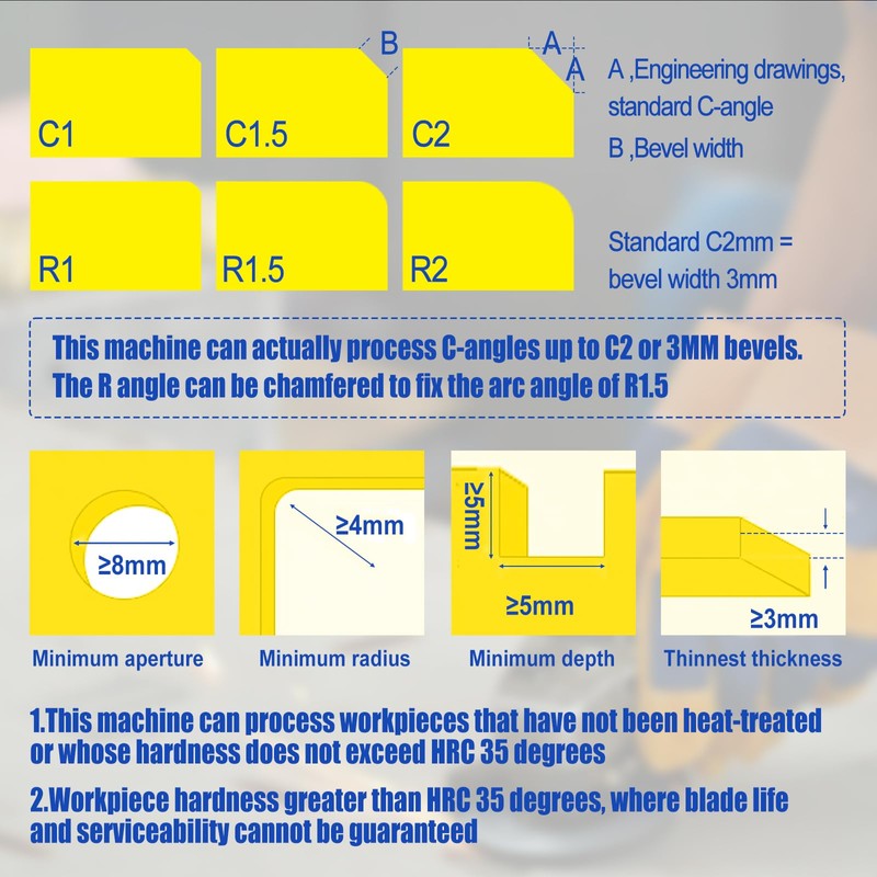 Chamfer performance: C0.1-C1.5, R0.1-R1.5.