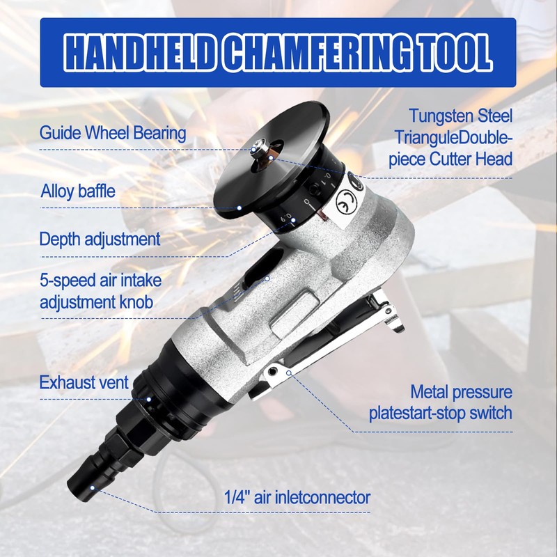- Easy to use: This 45 degree mini chamfering machine pneumatic tools has a new lightweight design, small and exquisite, smooth cut, high efficiency, low vibration, very smooth cutting of carbon steel. Easy to use with one hand.
