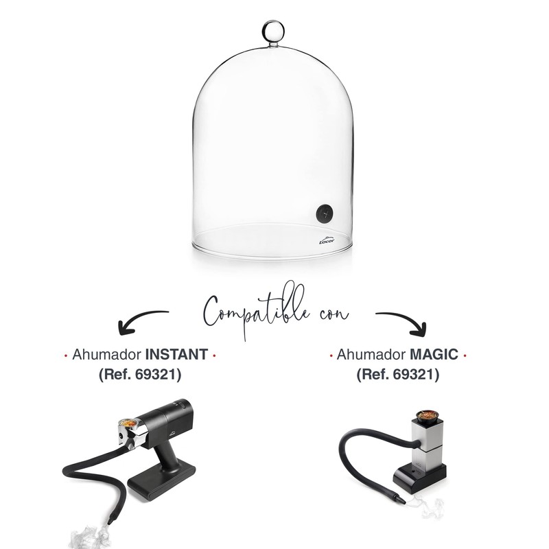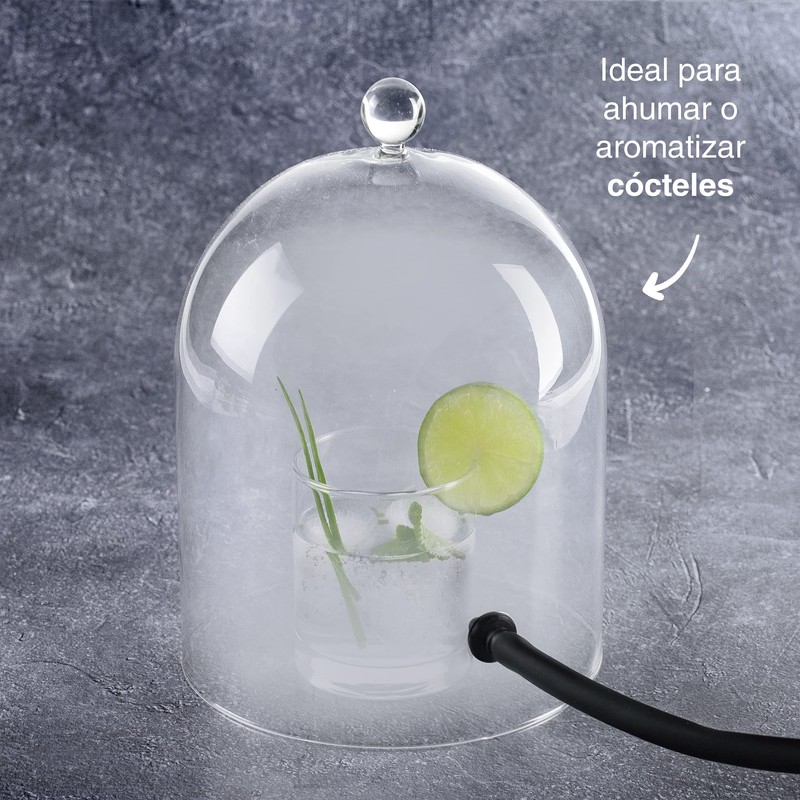 - Cocktail smoke hood made of high quality borosilicate glass. It is resistant to shocks as well as high and low temperatures. Microwave, oven and freezer safe.