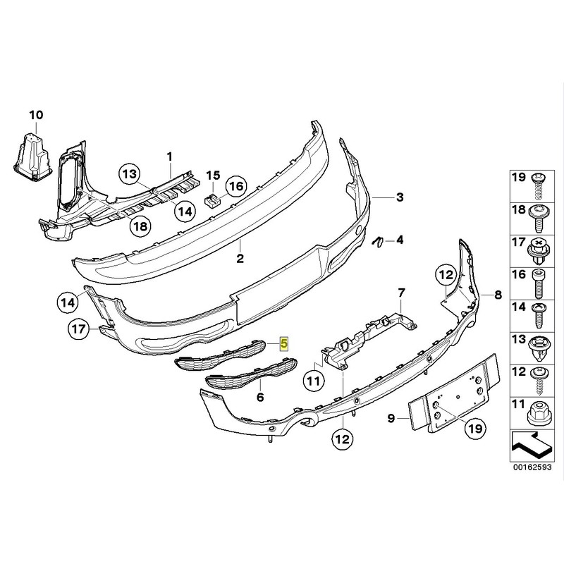 MINI R55 Rear RH Bumper Grille Trim Insert 7173634 51127173634 Genuine