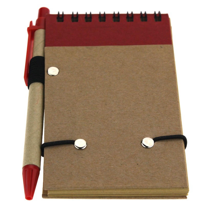 Mini Recycled Spiral Notebook Matching Colored Pen 50 Pages (Red)