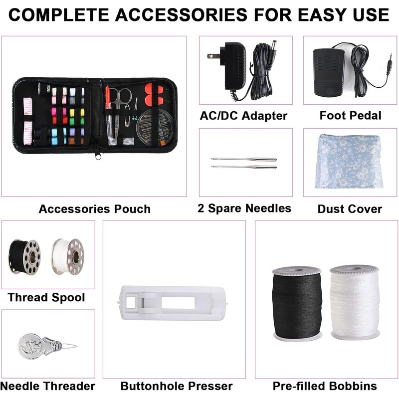 JUCVNB Mini Sewing Machine for Beginners and Kids Ages 8-12, Portable Sewing Machines with 12 Built-in Stitch Patterns, Light, 2 Speed Foot Pedal - Purple & White (with 27 Pieces Sewing Kit & Case)