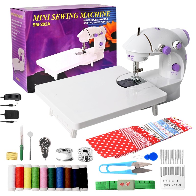 Mini Sewing Machine for Beginners – Portable Dual Powered Sewing Machine for Kids & Adults with Extension Table, Dual Speed,Light, and Sewing Kit for Creative Adventures Together