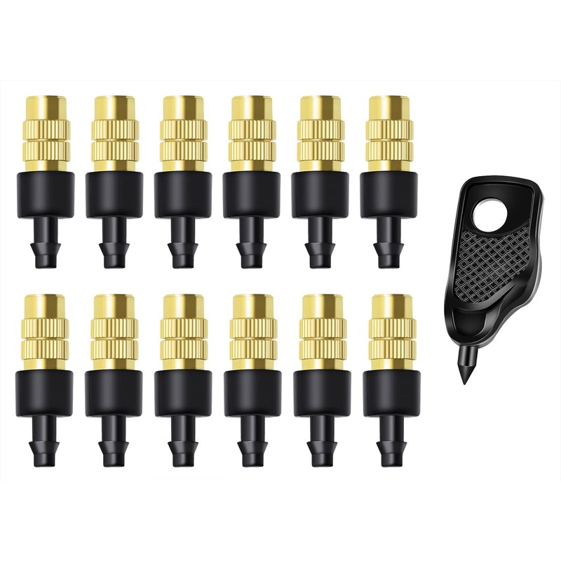 Mini Skater 12 SetAdjustable Copper Atomization Nozzle, 1/4'' Barb Connector Irrigation Drippers Sprinklers Emitter Drip System with 2Pcs Hole Punch Tools