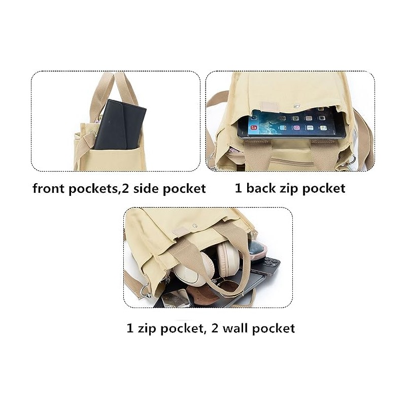 - ❥❥【Practical Structure】- 1 main compartment with zipper, two side pockets, one inner pocket and one front pocket with botton closure. large capacity, and an inner patch pocket with zipper, which is convenient for you to store your valuables such as mobile phone, wallet, etc.