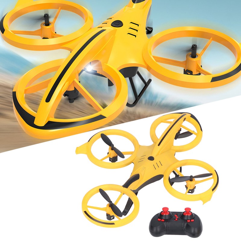 Mini Stunt Drone 360° Flip One Button Takeoff Full Cover Shell 4 Axes Palm Flying Helicopter Toys for IndoorYellow