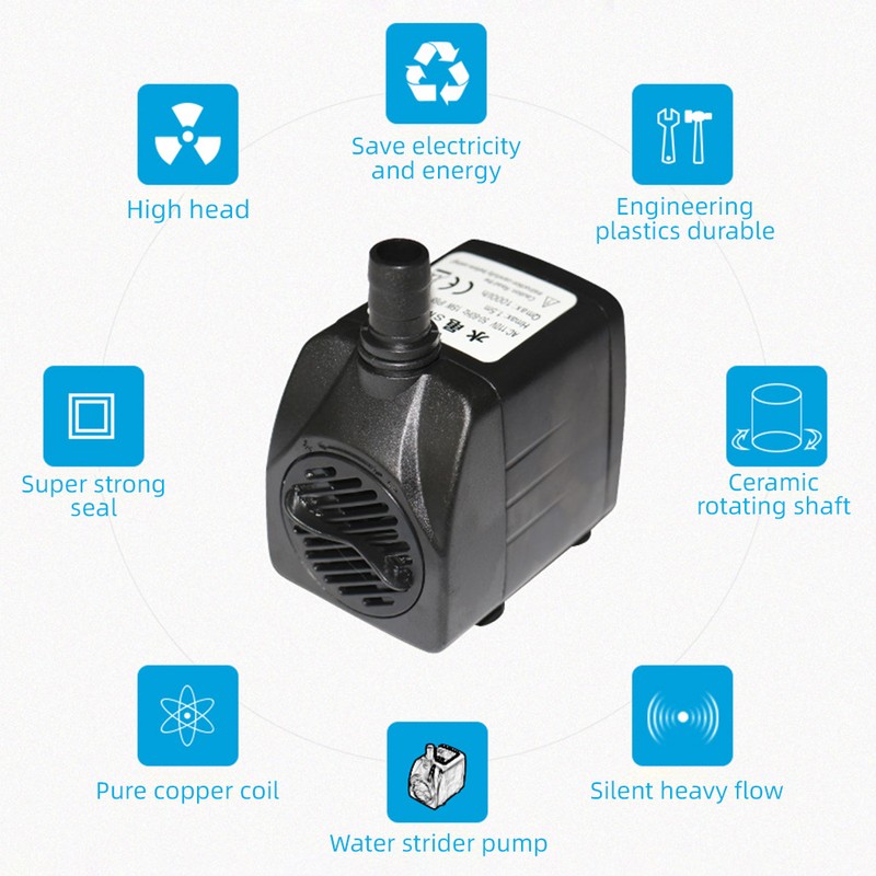 【Multifunctional Use】The mini water pump is easy to hide or disguise in the water. Perfect for aquarium, fish tank, pet drinking water, garden pond fountain, water cooling and hot water circulation.