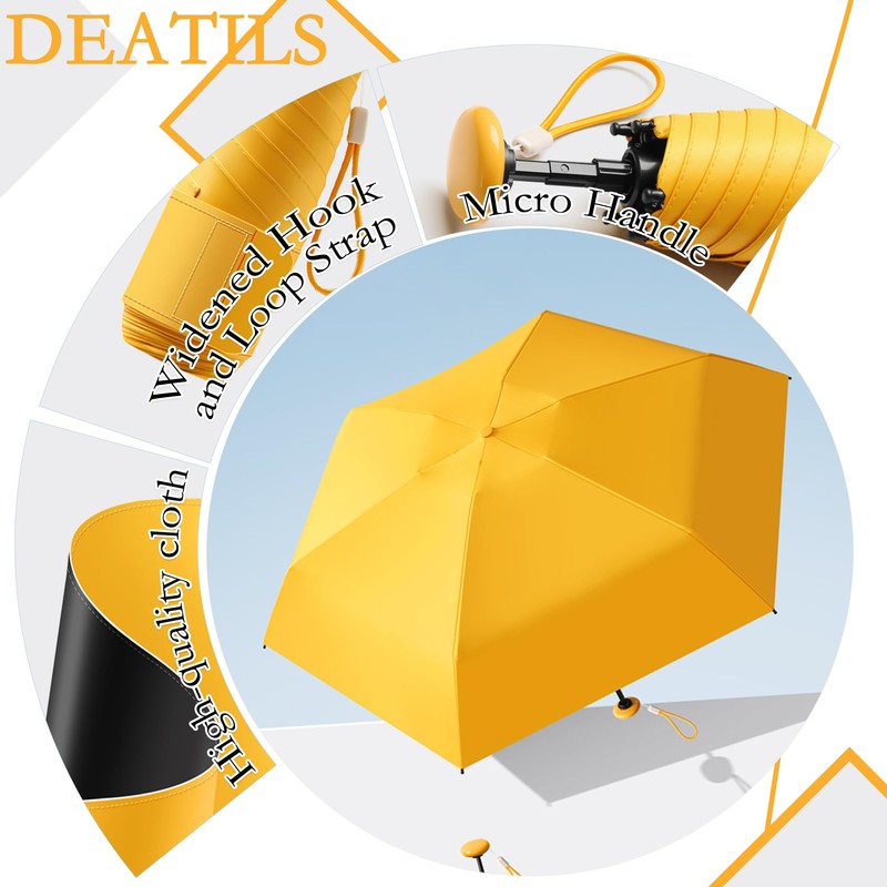 - Micro button handle, portable travel: The exquisite and compact round button handle reduces the overall weight of the umbrella, making it comfortable to hold and stylish. The handle and the umbrella are designed in the same color scheme, which is simple and generous. The umbrella is only 16.5cm/6.49IN long and weighs 220g/0.48lb/7.76oz when folded. It can be easily put into your backpack, wallet, or even pocket. Whether it is commuting or traveling, this umbrella is your ideal choice.