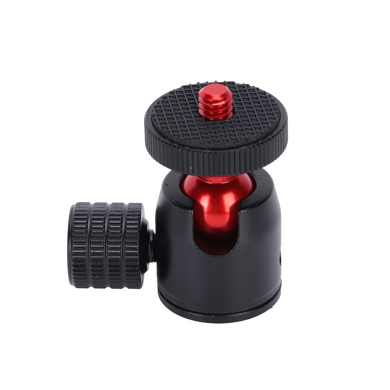 Mini Tripod Ball Head, with 1/4 Inch Screw and Hot Shoe Mount Adapter, Aluminum Alloy Monopod Ball Head, Angle Adjustment, for DSLR Camera Ring Light (red Ball)