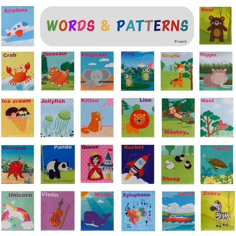 - Includes All 26 Letters: Uppercase and Lowercase. With a picture corresponding to the letter. Through the color, pattern, letters, words and parent-child interaction in the form of combining, in the process of learning and playing to promote the baby observation, voice, thinking, games, cognitive letters and words.