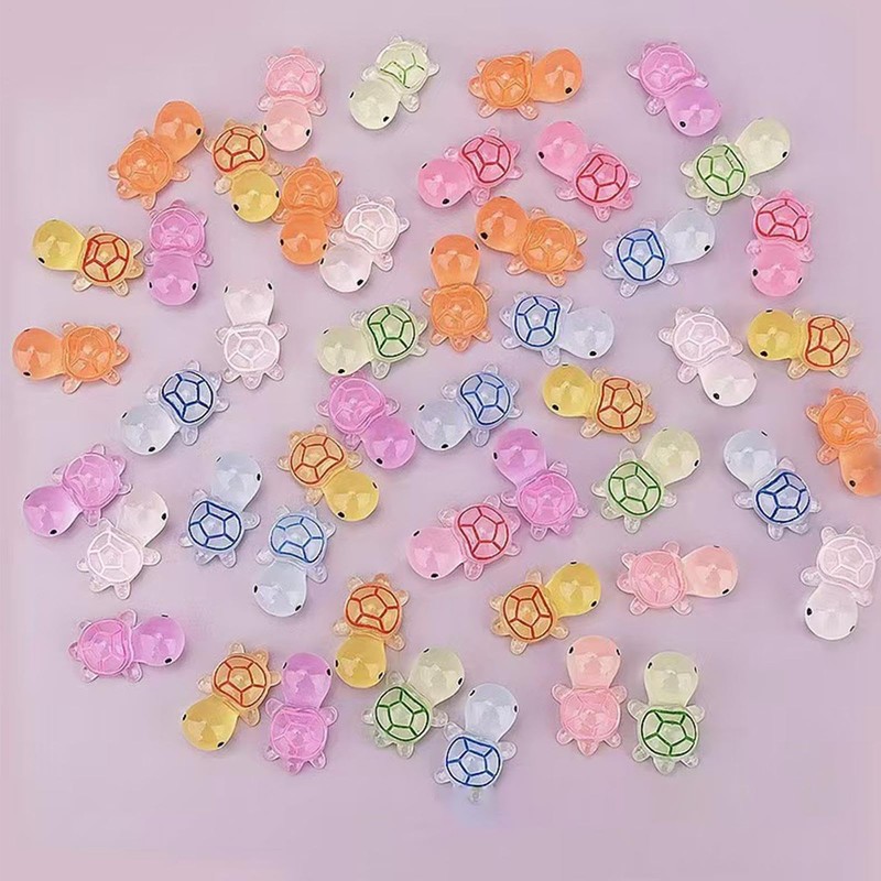 Mini Turtles 100 Pack, Glow in The Dark Tiny Turtles with Big Turtle Storage Box, Luminous Resin Animals Miniature Fairy Garden Landscape Accessories