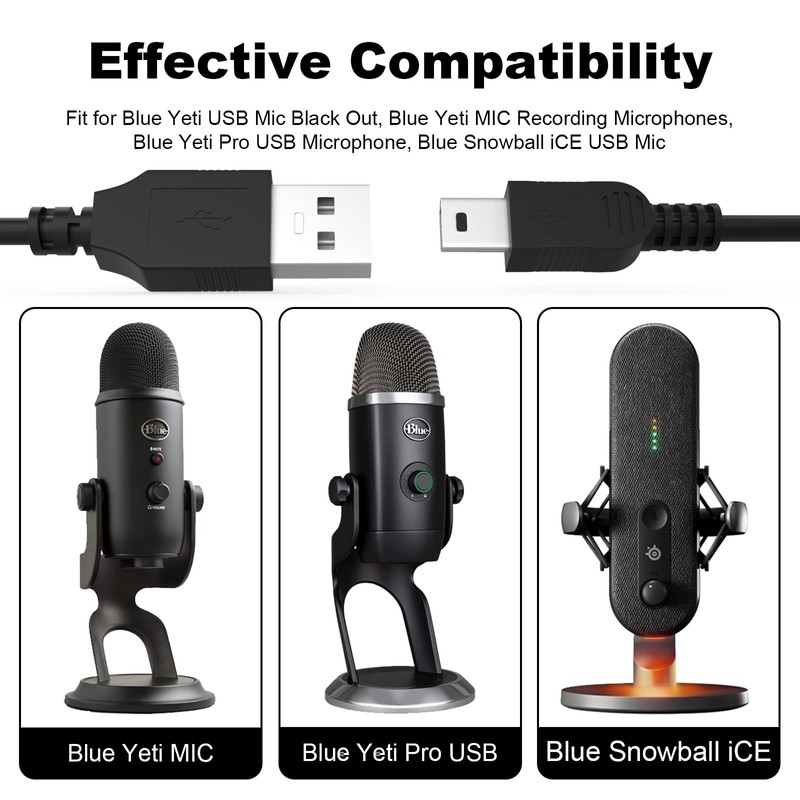 - ✅Das Blue Yeti-Kabel ist kompatibel mit Logitech for Creators Blue Yeti, Blue Yeti Pro, Snowball iCE Mikrofonen und anderen Geräten mit Mini-5-poligem USB-Anschluss. Es handelt sich um ein Blue Yeti Ersatzkabel.