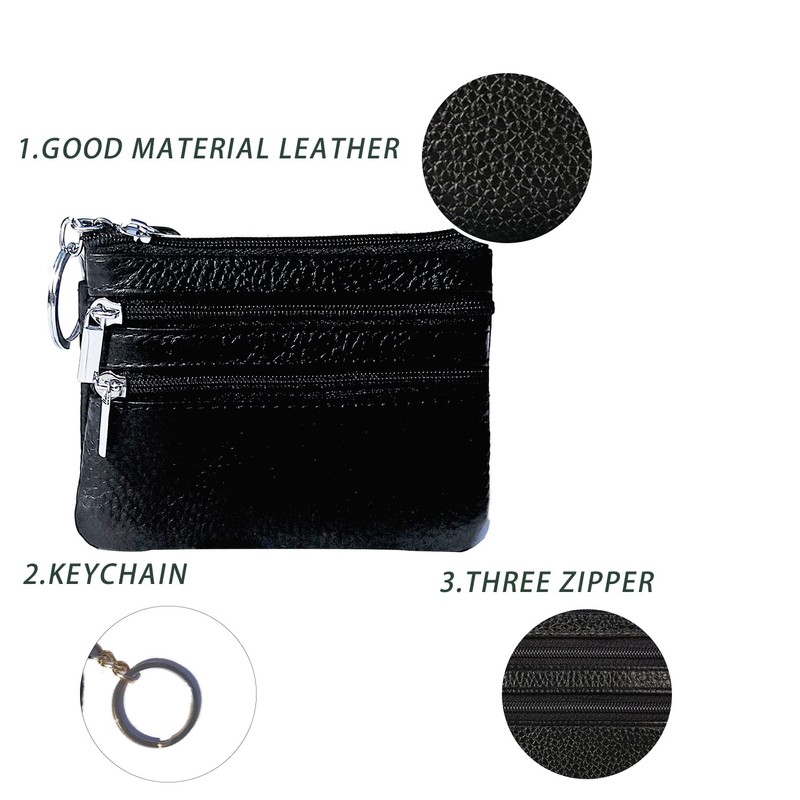• Construction: Small wallet was designed with 3 zip pockets in the front , 1 key holder, and 1 back pocket in the back,, this small coin handbag is suitable for coins, folded cash.