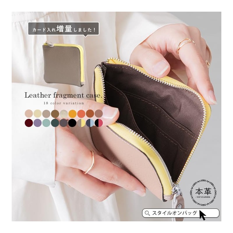 Mini Wallet, High Quality Cowhide Leather, Coin Case, Card Case, beige