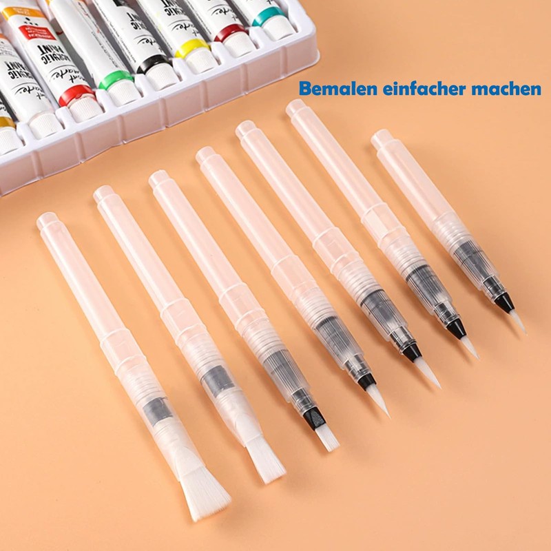 - What you get: mini acrylic paint box travel set 1 set (1 8-grid colour box, 12-colour watercolour costs, 1 drawing book, 6 different specifications brushes). Pocket size, easy to carry, paint anytime and anywhere.