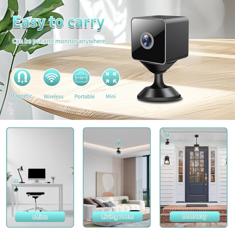 - Flexible stand design: The mini camera adopts a magnetic design and is equipped with a stand. It can be fixed on the wall or placed on the table, meeting the needs of various scenarios such as home, store, and garage.