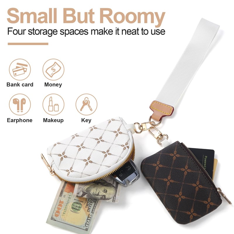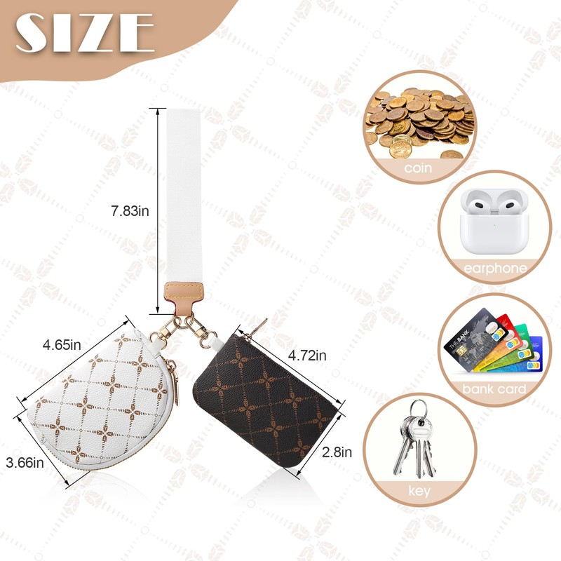 - Detachable Coin Purse:The mini coin purse designed for on-the-go convenience. Available in square (4.33 inches by 3.15 inches) or semicircular (4.5 inches by 3.5 inches) shapes, it comes with an 8.26-inch wrist strap.The multi-color coin purse you can carry with you can meet your daily needs Demand, wristlet wallet is a good fashion item!Beyond functionality, these purses add a touch of elegance to your outfits