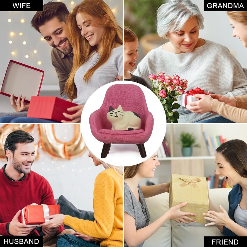 • Adorable Miniature Cat Figurines Set: This set includes one small cat and one small sofa, both of which are incredibly cute. The cat measures 1*0.55*0.7 inches, while the sofa measures 1.9*1.9*2 inches
