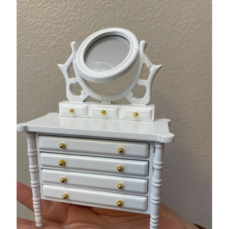 Miniature Dollhouse Dresser with Mirror, White, 4-Drawer, 1:12 Scale, 3.75x2x6 inches