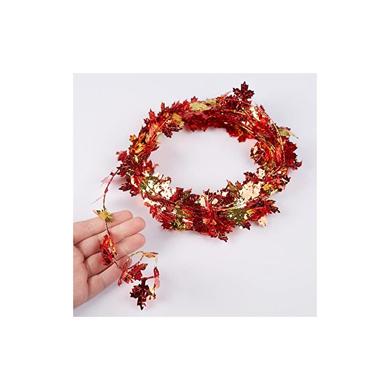 - Material - Miniature foil leaves in orange gold and green extend from a thin metal roping wire. The wire allows you to bend, shape and contour them