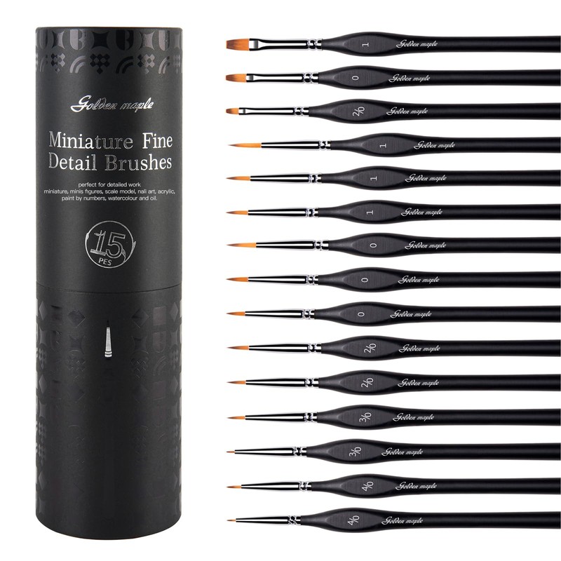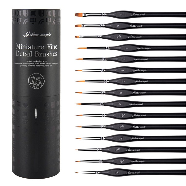 Golden Maple Miniature Paint Brushes, 15PC Model Brushes Micro Detail Paint Brush Set, Fine Detailing for Acrylics, Oils, Watercolors & Paint by Number, Figurine (Black)