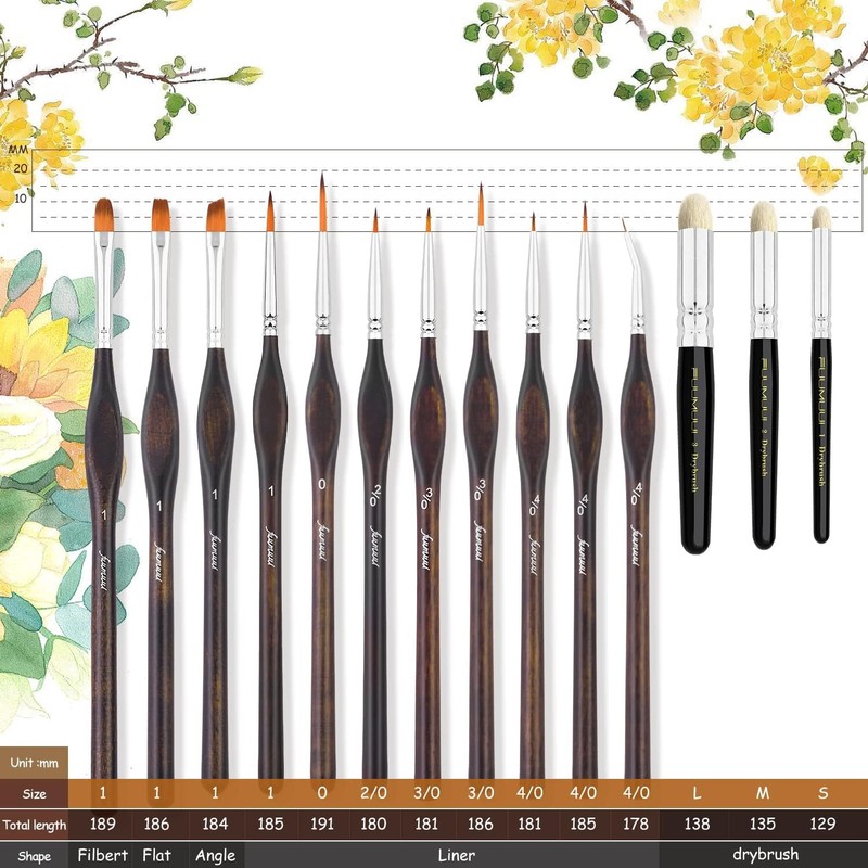 Miniature Paint Brushes with Domed Dry Brush Set for Miniature Painting14 Pcs, Fuumuui Miniature Model Paint Brush Set Dry Brush Miniatures for Warhammer 40k, Vallejo Paint, Citadel Paint