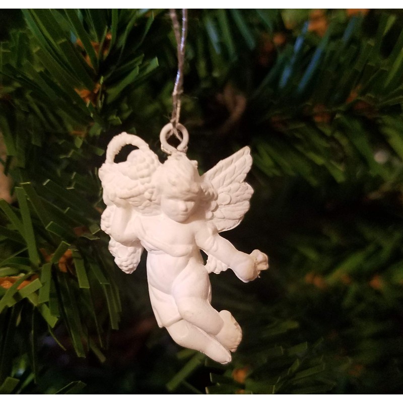 Miniature White Plastic Angel Ornament. Pack of 12. Measure approximately 1-1/4 inches in length.
