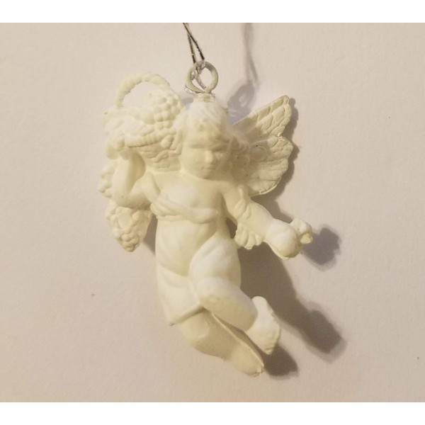 Miniature White Angel with Fruit Basket Christmas Ornaments, Pack of 12