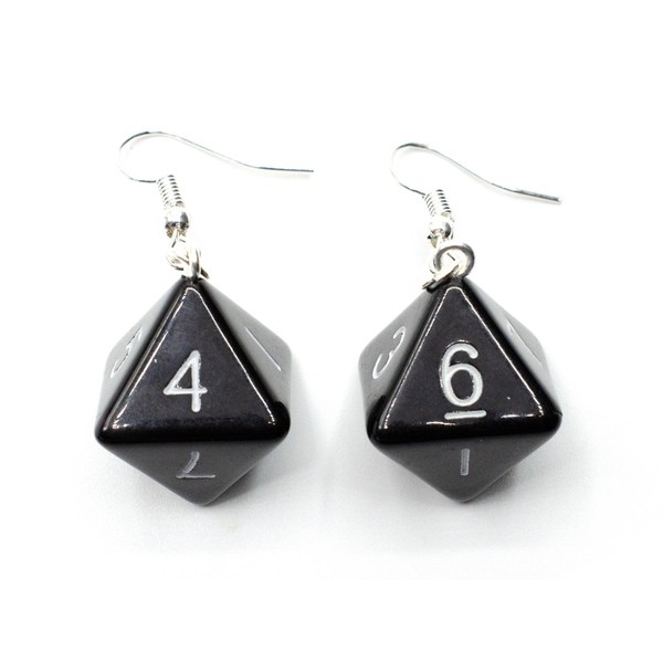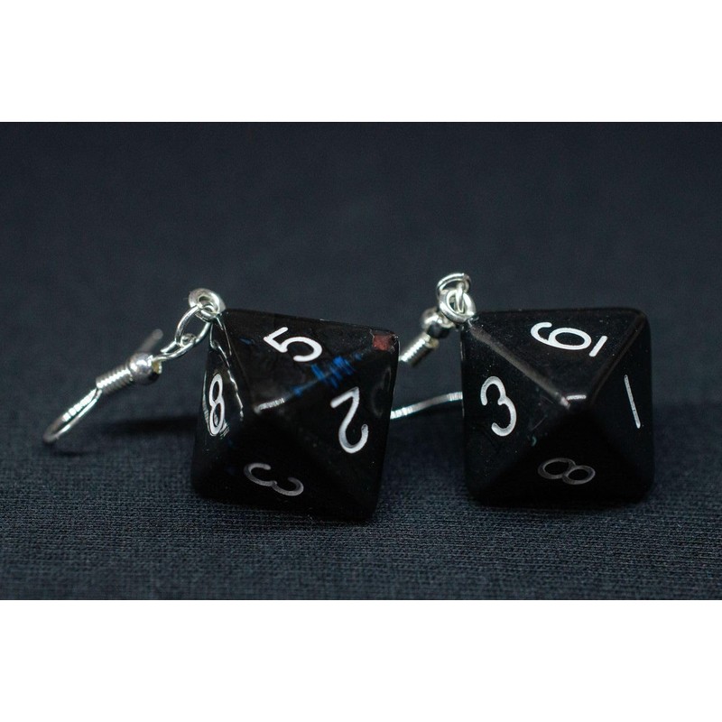Miniblings 8 Sided Dice Earrings Black Handmade Fashion Jewellery I Octahedron Game Cube Backgammon Board Game Game Casino Play Poker 80s Retro Earrings Earrings, Resin