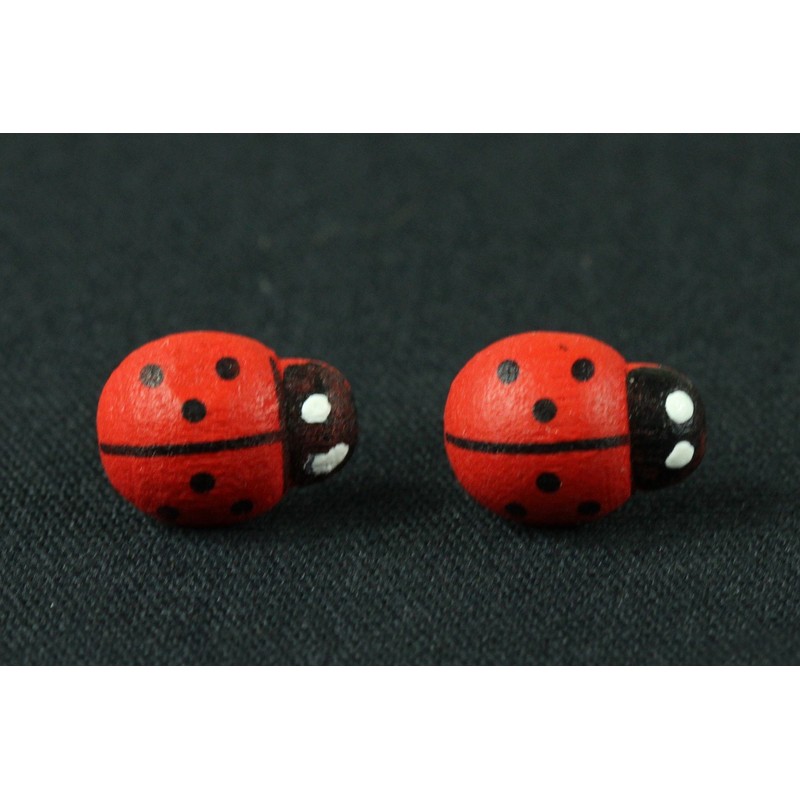 Miniblings Ladybird Beetle Stud Earrings Easter Wooden Extra Connectors