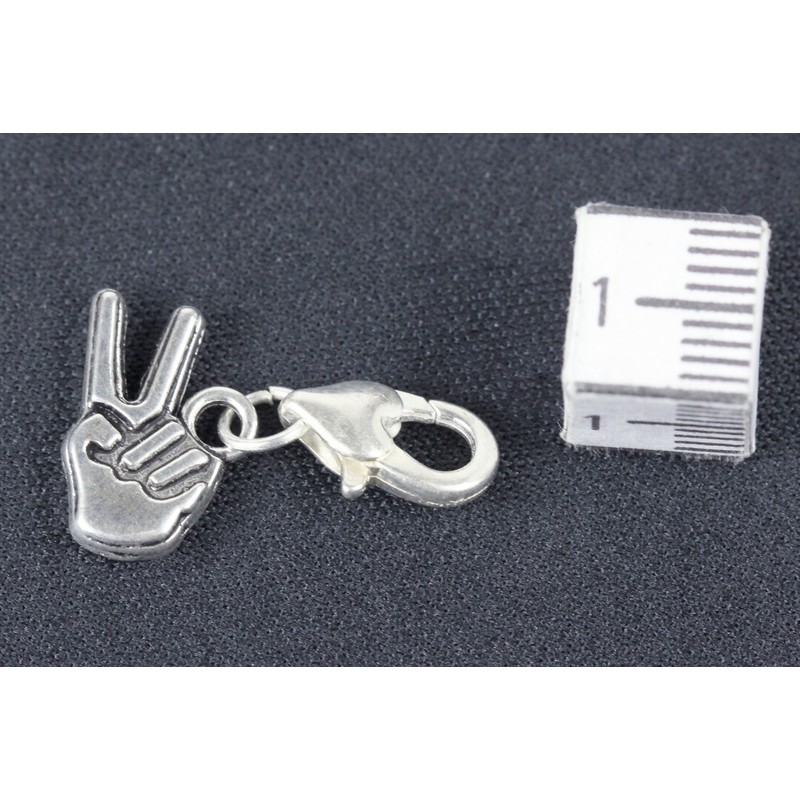 - Victory sign Peace sign as a pendant for zip and charm bracelet Material Pendant: metal carabiner: metal, silver plated size of pendant: 16mm Content: 1 ring with snap hook Handmade with love! Crafted in our workshop in Berlin, Germany Suitable for allergy sufferers Miniblings Jewellery for your loved ones! - A perfect gift for your anniversary, birthday, passed test, engagement, wedding, children's birthday party etc. Please visit our Store to find matching necklaces, earrings, key rings