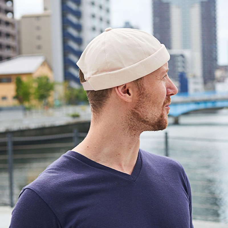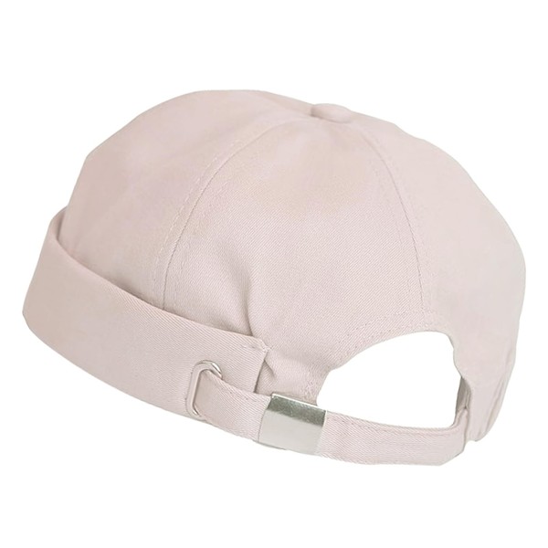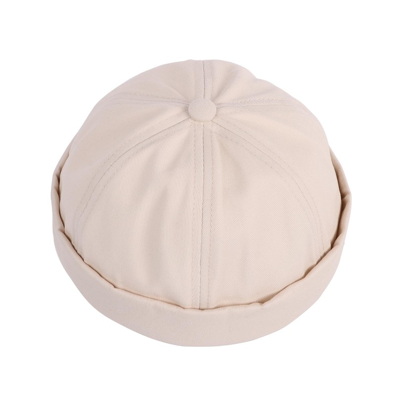Minicloss Docker Cap Men's Women's Hat, Adjustable Harbour Hat, Without Peak, Beanie Cap, Retro Brimless Hat, Chinese Style, Cotton, Short, beige