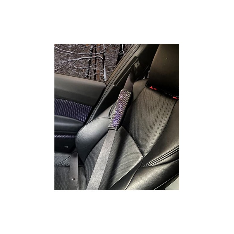 Make your car seat belt comfortable and cute with our sparkling bling seat belt cover pads. Cushioned with a super soft microfiber pad, leather trim and covered with a smooth sheet of shimmering inlaid crystals, plus velcro for easy attachment and removal on all seat belts. Our seat belt pads do not rub, slip, slide, or scratch. Just wrap it around your seat belt and you're ready to ride comfortably in style.