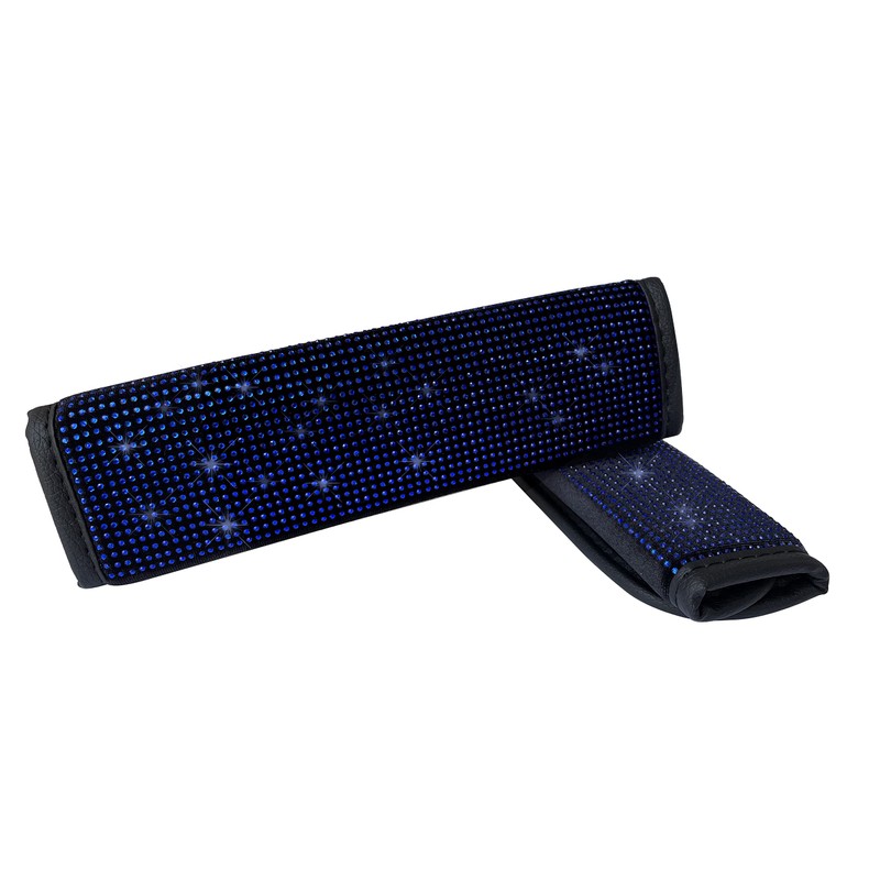 Make your car seat belt comfortable and cute with our sparkling bling seat belt cover pads. Cushioned with a super soft microfiber pad, leather trim and covered with a smooth sheet of shimmering inlaid crystals, plus velcro for easy attachment and removal on all seat belts. Our seat belt pads do not rub, slip, slide, or scratch. Just wrap it around your seat belt and you're ready to ride comfortably in style.
