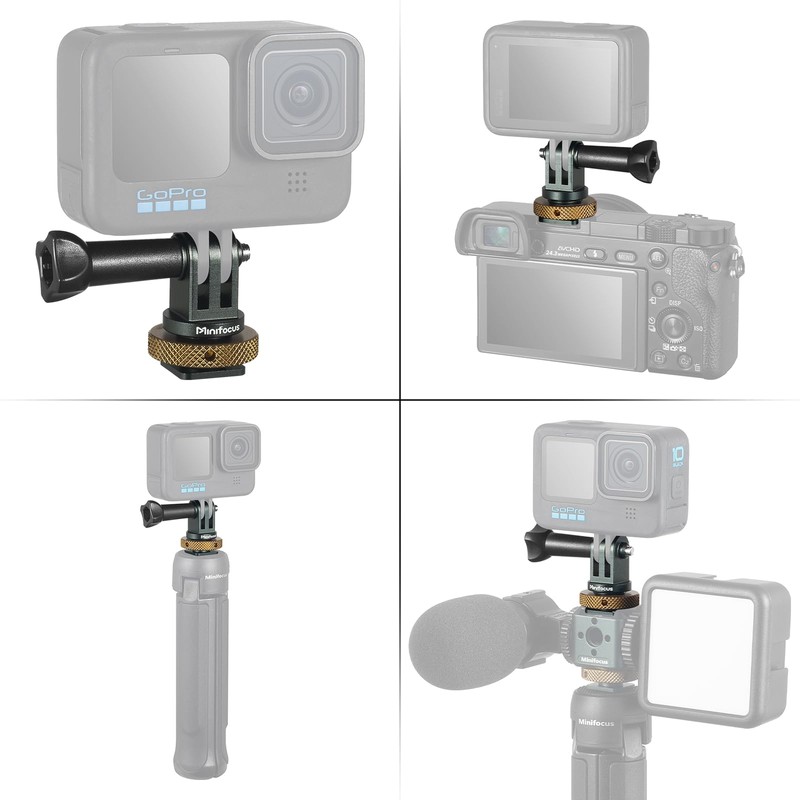 MINIFOCUS Adaptador de montaje para zapato caliente a GoPro, adaptador de montaje para cámara fría con tornillo de aluminio CNC para GoPro Hero 13/12/11/10/9/8/7/6/5/4, DJI Osmo Action, Campark y