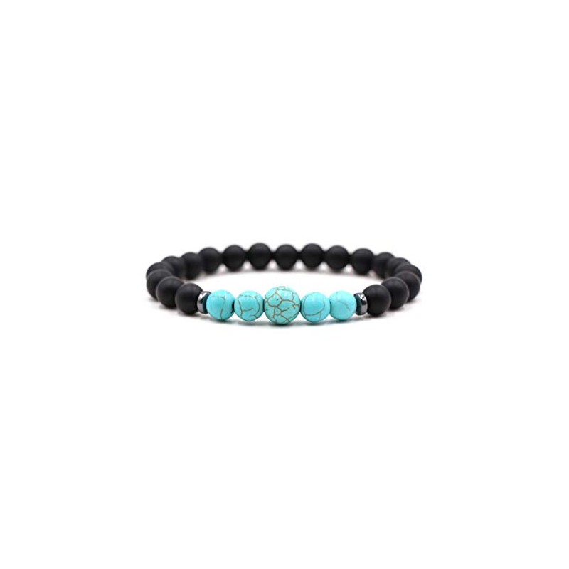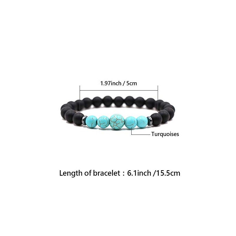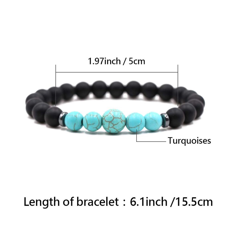 MiniJewelry Black Lava Bead Turquoise Bracelet for Men Women Elastic Stretch Blessing 8.5mm