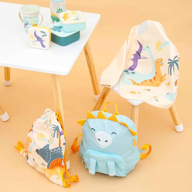 - Back to the school collection: animal-shaped backpacks available in three fun designs (Jungle, Jurassic and Fantasy). Discover the matching gym bags, cups, lunch boxes, water bottles, painting coats.